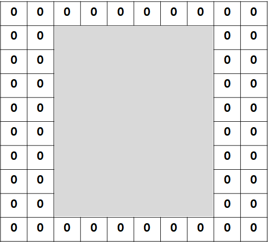Zero Padding은 이미지의 위/아래 혹은 양 옆에 0으로 이루어진 값들을 추가하여 가로 세로의 비율을 1:1로 맞춰줍니다.
