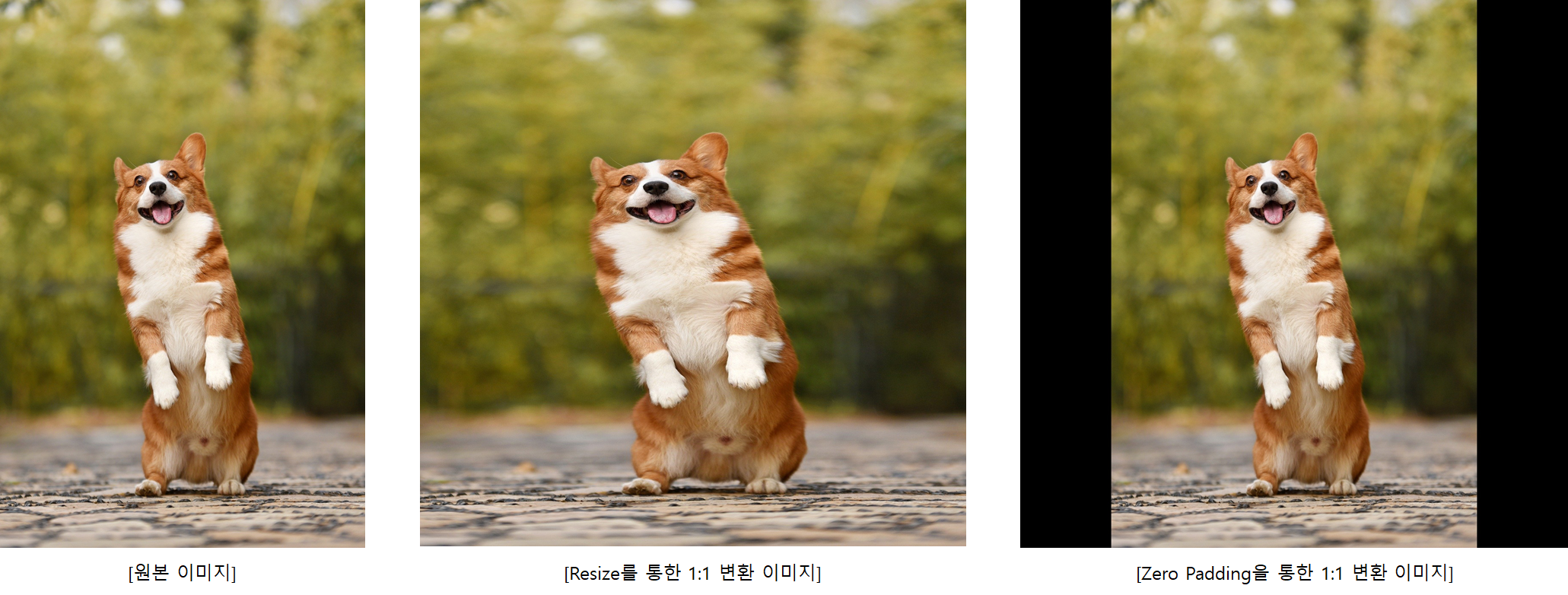 만약 중요한 feature가 위처럼 늘어나버리게되면 이상해질 수 있습니다. 이럴때 원본 이미지의 비율을 유지하면서 영상의 크기를 조정하는 함수가 바로 Zero Padding입니다.