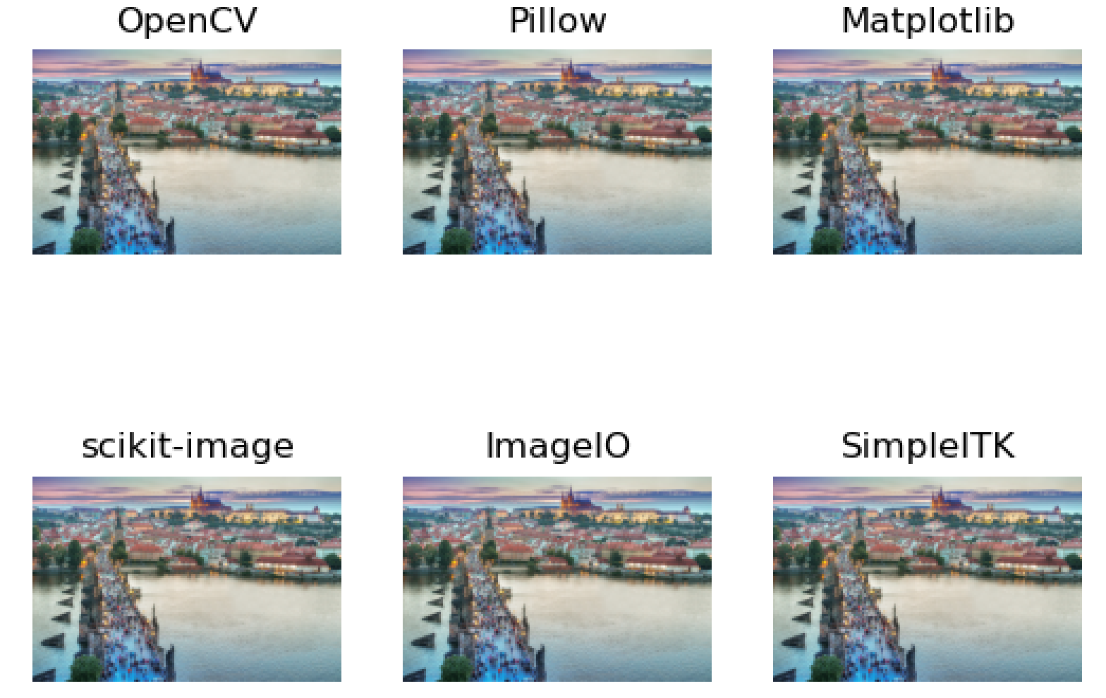 title_list = ['OpenCV', 'Pillow', 'Matplotlib', 'scikit-image', 'ImageIO', 'SimpleITK']